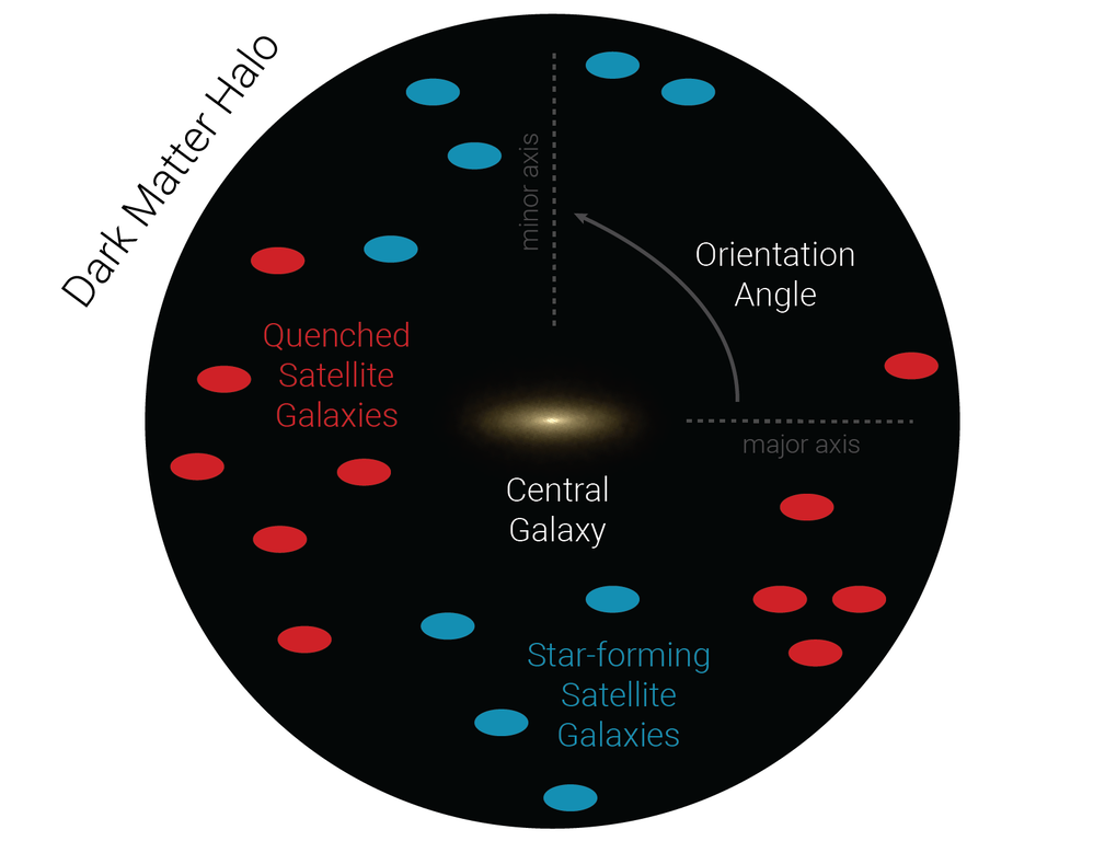 "We looked at the result from the point of view of two different mechanisms that could lead to such a phenomenon" explains Dr. Dylan Nelson, who leads an Emmy-Noether research group at the Institute for Theoretical Astrophysics of the Center for Astronomy. "On the one hand, a difference in the formation location of satellite galaxies could be responsible, for example if the satellite interacted with the ‘cosmic web’ of large scale structure prior to entering the halo itself, and this affected its star formation. On the other hand, it may be an effect of the central supermassive black hole releasing gas and energy into the halo of a large galaxy through which the satellites move, primarily just along the central axis."
